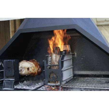 Ce barbecue en tôle d’acier de 3 à 5 mm d’épaisseur est surmonté d’une hotte en double paroi qui permet aux côtés extérieurs de rester tiède pour plus de sécurité.