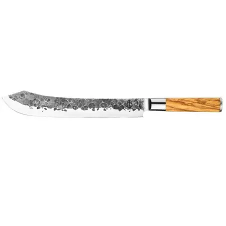 Couteau de boucher avec lame martelée et un manche en bois d’olivier naturel.